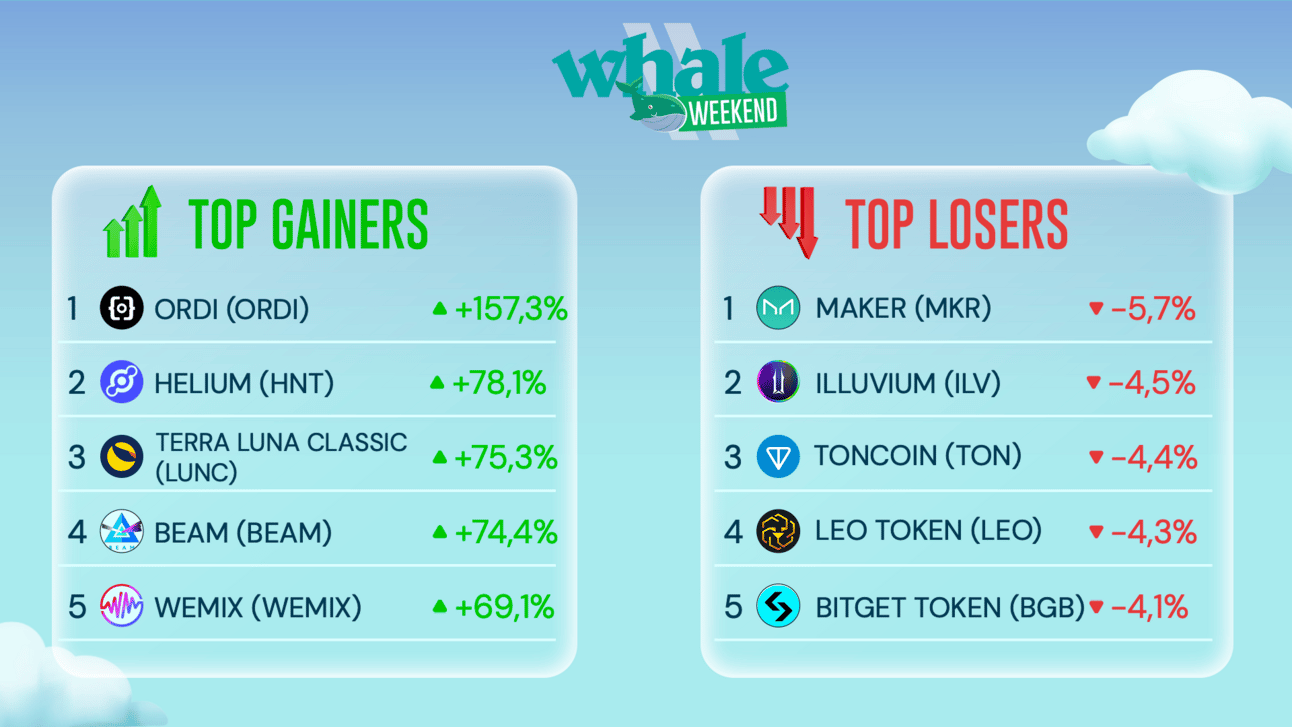 Non si può parlare ancora si “altseason”, certo, ma la strada sembra quella. Nel mentre, in numeri migliori sono registrati da chi raccoglie i primi frutti dello sviluppo anche in tempo di bearmarket, come Helium (HNT), che lancia il suo nuovo piano telefonico “decentralizzato”, e chi come ORDI (ORDI) gode del trend Ordinals sulla rete Bitcoin (e oltre).