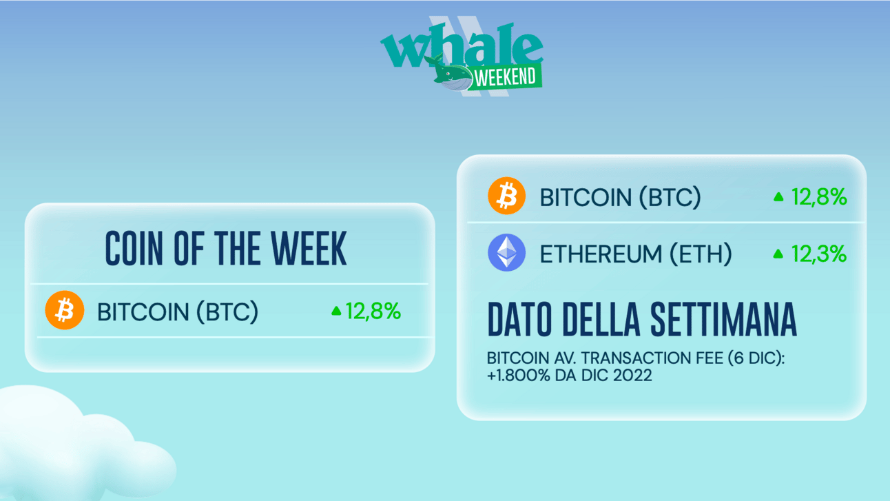 Proprio quest’ultimo dato ci aiuta però anche ad analizzare gli effetti collaterali sulla rete BTC, che se da un lato vede crescere hashrate e dominance, dall’altro spiega anche l’aumento del costo delle transazioni, che hanno raggiunto un nuovo picco il 6 dicembre, aprendo forti discussioni intorno alla sostenibilità delle “inscription”.