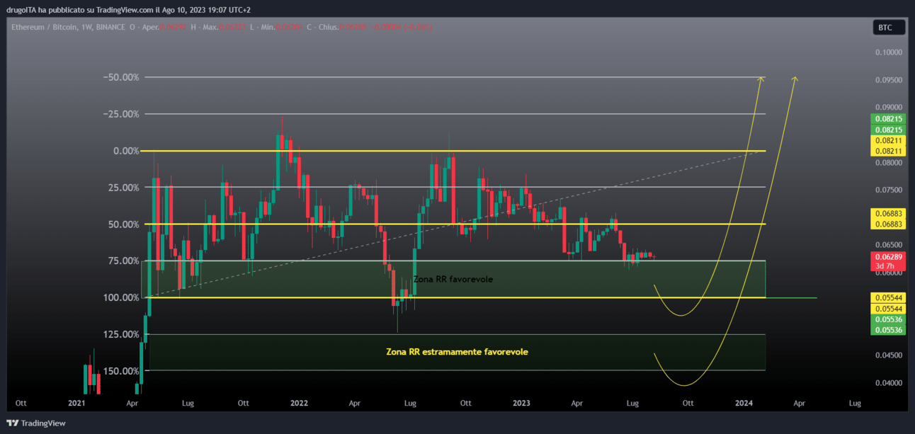 Grafico ETH/BTC settimanale del 10/08/2023