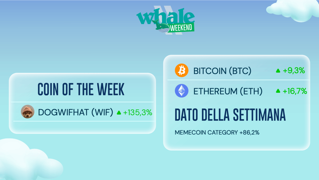 La settimana appena passata si è aperta infatti con nuovi ATH registrati dalle memecoin di nuova generazione (assenti nella precedente bullrun) come PEPE, BONK e WIF. Più indietro le classiche “canine” Shiba Inu e Dogecoin, che pur in rialzo rimangono lontane dai loro massimi.