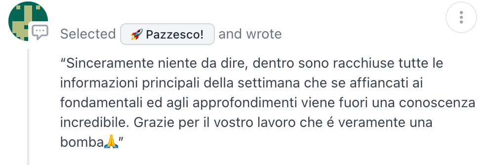Leggere i vostri commenti ci ha dato una carica incredibile! Forse questa volta ci siamo fatti prendere troppo la mano con i contenuti?