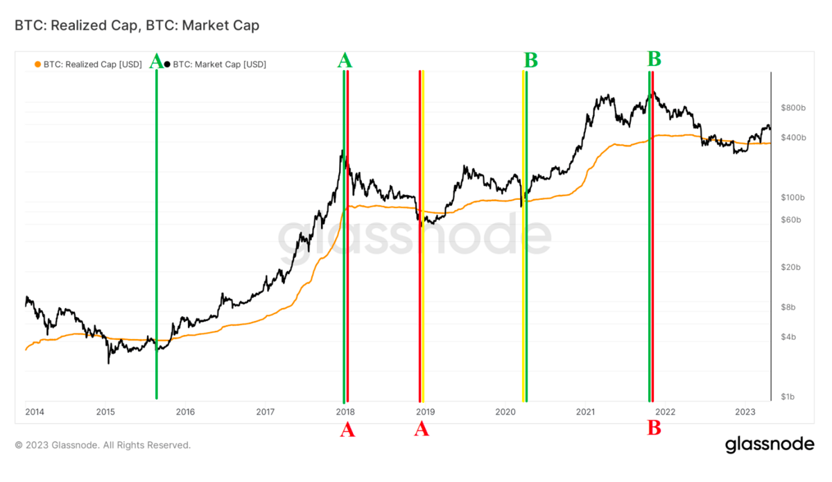 Si capisce quindi l’importanza di comparare la Realized Capitalization con la Market Cap di Bitcoin, così da comprendere l’attuale situazione di mercato.