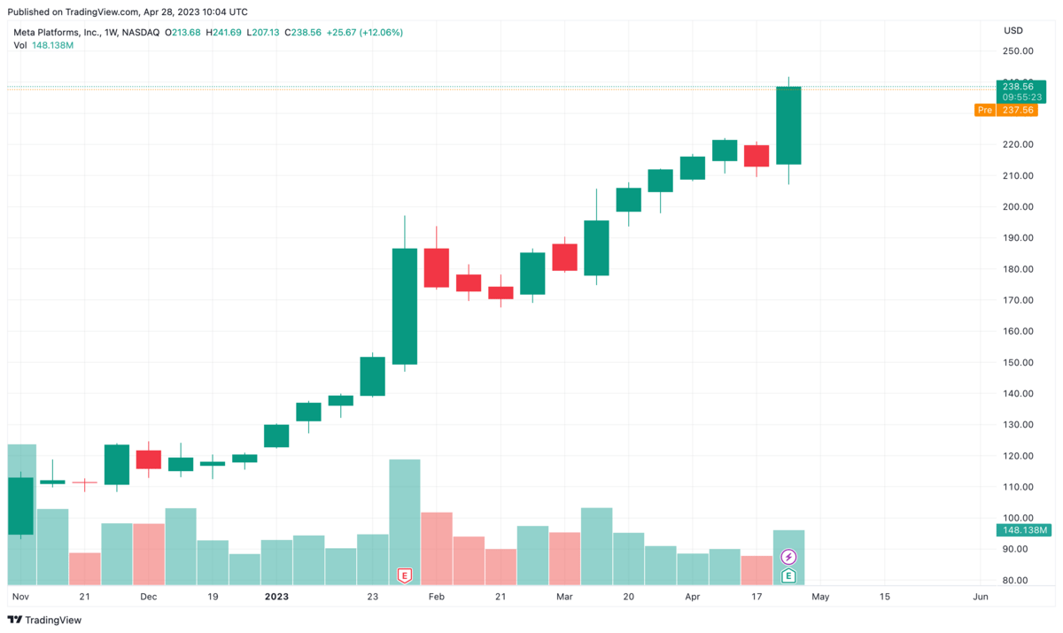 Sintomatica di ciò la posizione espressa da Meta che, pur non abbandonando i propri progetti legati al metaverso, punta sempre più sull’AI. Nel mentre, chiude il Q1 2023 con earnings sopra le aspettative ed il prezzo delle sue azioni ne risente alla grande!